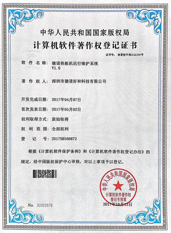德诺热板机运行维护系统(软著)