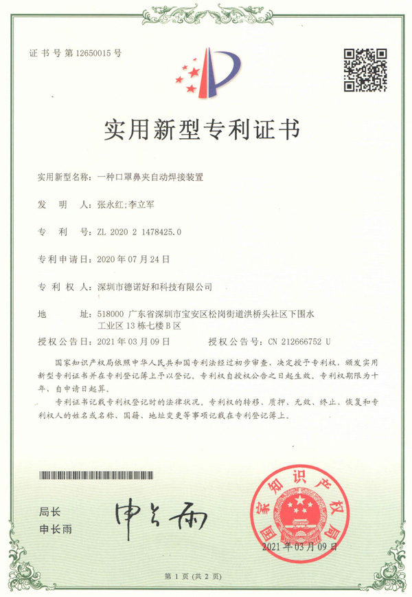 一种口罩鼻夹自动焊接装置(实用新型专利证书)
